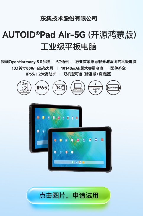 東集AUTOID Pad Air-5G(開源鴻蒙版)不僅是東集技術(shù)創(chuàng)新的結(jié)晶,更是OpenHarmony生態(tài)在工業(yè)物聯(lián)網(wǎng)領(lǐng)域落地生根的典范,生動詮釋了“碳硅共生”理念下,自主可控的智能終端硬件如何賦能實體經(jīng)濟(jì),推動效率革新與智能化蛻變。